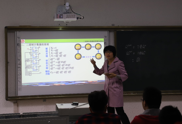 一堂真正的好课,不仅是老师讲的漂亮进行知识传递,而更重要的是能促进学生的能力、思维发展。朱老师说,刚来学校上课时,她在讲台上讲的激情四射,不亦乐乎,但看到下面一脸茫然的学生,朱老师不断的进行反思,上一堂好课的前提是首先要了解自己的学生,他们的认知水平,他们的学习进度,普遍的接受能力,以及所授内容的难易程度,在这些基础之上才能确定自己的讲课风格。随着信息技术的进步,朱老师基于翻转课堂和混合式教学的理念,将线上和线下教学进行结合,借助于学校的网络教学平台和雨课堂,将学习资料提供给学生,引导学生进行自主学习,自己确定学习目标,选择学习方法,监控学习过程,具体看一节课中学生学习的目标、方法、进度、学习积极性等。根据学生对考研、工作的不同选择,把握学生们对课程内容知识的需求,方便满足学生的不同需求。在课堂上,通过弹幕、投票、测试、分组讨论等方式活跃课堂气氛,注重每个学生的参与互动,同时开展研究式教学,把生活实例与专业课程中的工程设计结合,分析问题,解决问题,将知识能力进行迁移。结合电子信息技术发展迅速的特点,在课程平台上给同学们开设电子信息快讯栏目,引导同学们了解电子技术前沿。