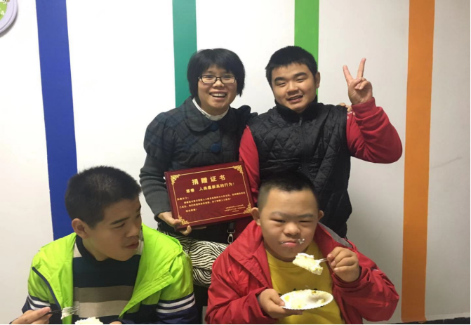 用爱心火炬照亮别人的时候,其实也在温暖着自己。朱老师热衷于公益活动,作为志愿者多次参加关爱儿童的活动,带领城里的孩子去山里的孩子家里交流互动,每次去山里,看见那些留守儿童,单亲儿童,都有一种说不出的酸楚,曾经帮扶过安康市坝河镇兴隆村一个家庭,家中有六口人,八十多岁的爷爷奶奶,一位孩子的爸爸、三个分别九岁、五岁、二岁的孩子,家中四面徒壁,孩子上小学要来回走两个小时的山路,但是这个孩子从来不会迟到,孩子的坚持和勇敢更让人感动。作为嘉宾参加安康首家智障人士服务机构慧灵智障人士服务机构挂牌仪式时,安康综合广播播报了朱老师的采访录音,她说希望更多的爱心人士来关爱智障的小朋友,和他们互动,让他们感受更多的快乐,在小朋友开心快乐的时候,我也开心并快乐着。