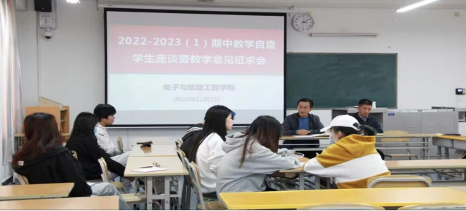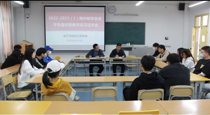 为认真贯彻落实教务处《关于开展2022-2023学年第一学期期中教学自查的通知》精神,深入了解学生学习生活动态,进一步加强学风教风建设,11月2日下午,澳门十大信誉好的网站在江北校区一号教学楼1307教室召开学生座谈会。学院党总支副书记蔡正旺、副院长宋权华出席座谈会,2020级至2022级各班共30余名学生代表参加会议。