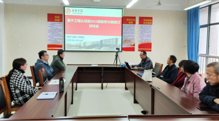 会上,丁礼磊介绍了电子信息工程专业2022版人才培养方案的修订过程、外审专家提出的意见,以及目前关于培养方案和配套教学大纲需要各位教师做的工作;电子信息工程专业认证的计划和当前需要准备的工作;结合师范专业认证时所需的课程达成度材料做了介绍。各位老师就2022版人才培养方案进行了热烈讨论,对配套大纲编写、期末试卷的编制以及课程教学过程中支撑材料等方面进行了交流并提出了一些宝贵意见。讨论结束后,丁礼磊老师就2022版教学大纲修订工作进行了安排部署,特别提醒了本次修订的目标和注意事项,要求各个课程在大纲修订中重点体现以学生为中心,满足工程认证的基本评价标准。