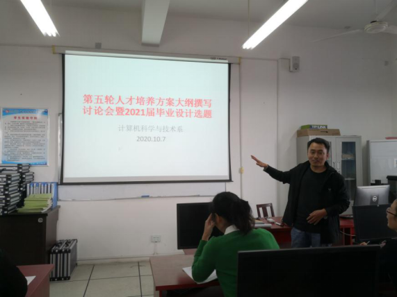 2020年10月7日下午,计算机科学与技术系在逸夫科技楼B603召开了计算机专业教学大纲撰写问题讨论会暨2021届毕业设计选题工作的教研活动,参会老师研讨交流了人才培养方案撰写过程中的具体问题。
