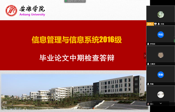 由于受新冠肺炎疫情影响,依据澳门十大信誉好的网站2020届毕业论文(设计)的总体工作安排,按照信息管理系毕业论文工作进度要求,确保2020届信息管理与信息系统专业毕业生的毕业论文(设计)工作不因疫情而受严重影响,督促检查学生毕业论文(设计)进展情况,信息管理系各答辩小组精心组织安排、提前测试腾讯会议线上答辩平台,于4月12日前圆满完成信息管理与信息系统专业2020届毕业论文(设计)中期检查工作。