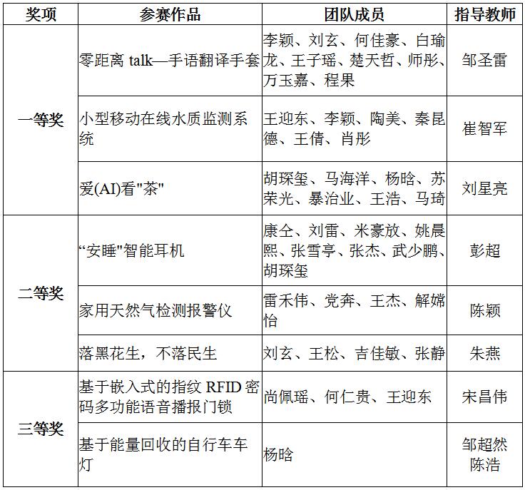 自2019年11月校赛启动以来,澳门十大信誉好的网站高度重视,统筹安排部署,及时组织学生报名参赛,动员教师加强指导,积极孵化培育项目。在疫情期间,创新工作思路,克服了疫情防控的重重困难,精心打磨,提升作品质量,项目《小型移动在线水质监测系统》、《爱(AI)看“茶”》、《手语翻译手套》在获得校赛一等奖后,推荐参加省级比赛获得了铜奖。