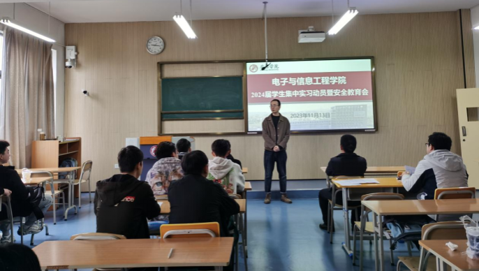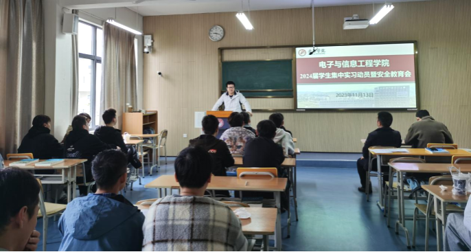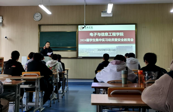 11月13日上午,澳门十大信誉好的网站1号教学楼1308教室召开了2024届毕业生集中实习动员暨安全教育培训会。会议由学院副院长宋权华主持,学院党总支副书记蔡正旺、实习班级辅导员张宇航、实习带队教师邬子逸以及参加本次集中实习的全体学生参加了会议。