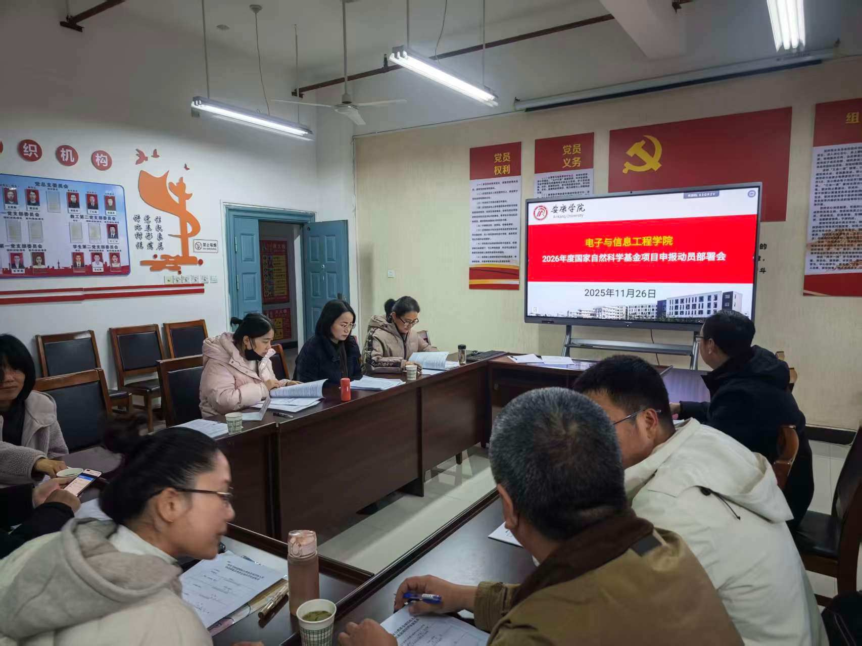 2025年1126午,电子信息工程学院召开2026年度国家自然科学基金项目申报动员部署会。会上,丁礼磊副院长首先传达了科研处发布的《关于做好2026年国家自然科学基金项目申报工作的通知》,并对关键政策变化、各类型项目申报的具体要求以及重要时间节点进行了详细解读。
