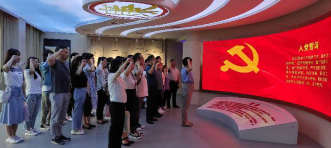 随后,在鲜红的党旗下,在党总支纪检委员朱燕的带领下,全体党员同志庄严地举起右手,握拳宣誓,重温入党誓词。