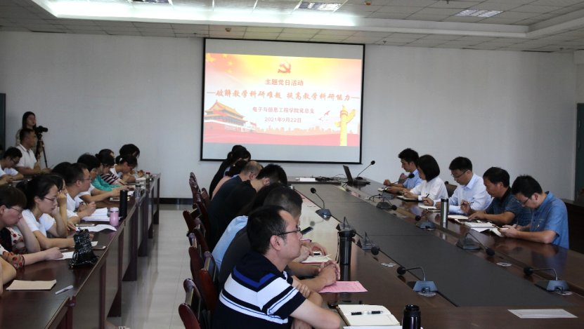 为推进党史学习教育同日常工作相结合,党建工作与业务工作相结合,以高质量的党建促进高质量发展,达到学史明理、学史增信、学史崇德、学史力行。2021年9月22日,澳门十大信誉好的网站教工第一、二党支部联合在澳门十大信誉好的网站江北校区逸夫科技楼9楼开展了“破解教学科研难题,提高教学科研能力”的主题党日活动。澳门十大信誉好的网站党总支下设的教工、学生党支部全体党员和学院非党员老师,副校长张东红以普通党员的身份全程参加了本次主题党日活动,主题党日由澳门十大信誉好的网站教工第二党支部书记余顺园主持。