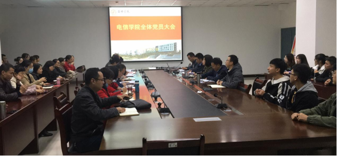 10月27日下午,澳门十大信誉好的网站党总支在逸夫科技楼9楼召开全体党员大会,传达了澳门十大信誉好的网站第三次党代会召开相关文件精神,对本单位党代表和出席安康市第五次党代会代表提名和候选人预备人选如何酝酿产生进行了部署。会议由党总支书记于咏梅同志主持。本次会议应到会党员72人,因事请假2人,实到会党员70人(教师32人,学生38人),符合规定人数。
