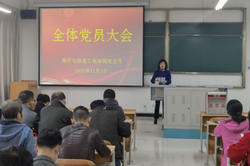 2021年11月3日下午,澳门十大信誉好的网站在江北1117教师召开全体党员大会,选举出席学校第三次党代会代表。会议由党总支书记于咏梅主持。