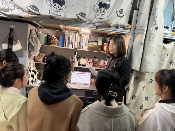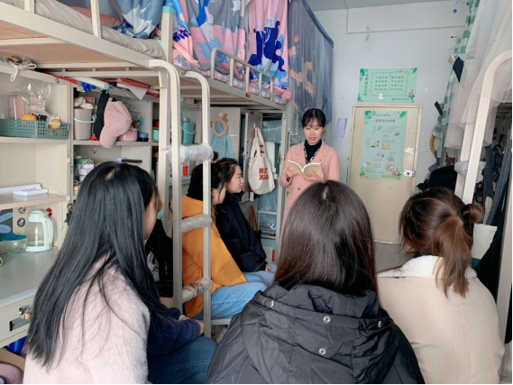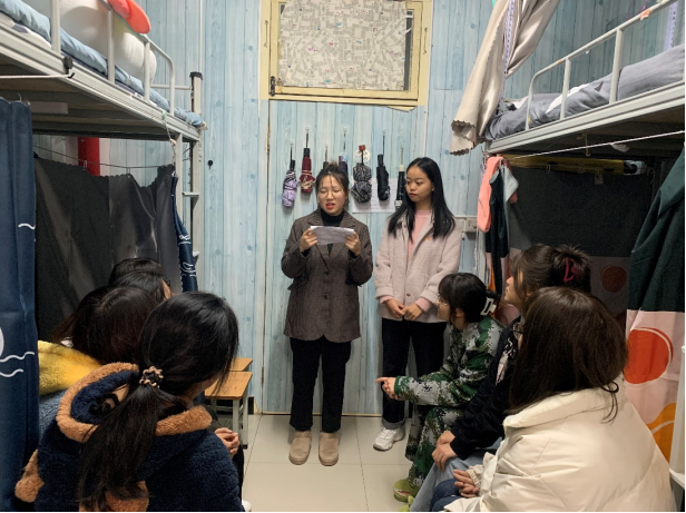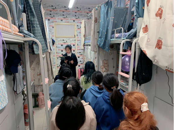 李赛凤葛贝同志进入2021级新生宿舍通过宣讲十九届六中全会精神及习近平总书记七一讲话精神使同学们深入贯彻落实“四史”学习使青年学生懂得今天幸福生活来之不易,坚定初心,砥砺前行在伟大建党精神的激励下,争做中华民族伟大复兴的先锋力量。不忘初心,永远跟党走肩负起“强国一代”的历史责任