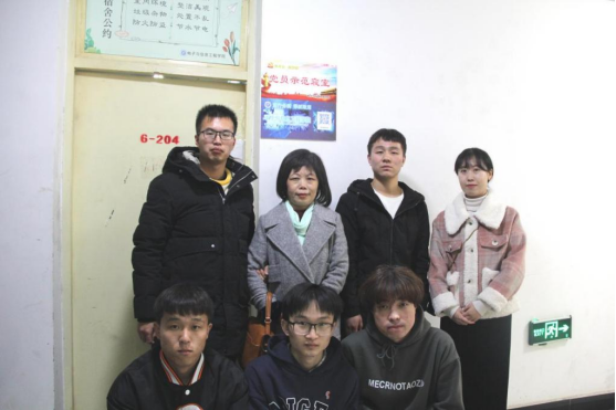 澳门十大信誉好的网站党总支书记于咏梅、辅导员李章雨与党员示范宿舍同学合影留念