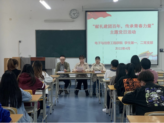 为庆祝中国共产主义青年团成立100周年,喜迎中国共产党第二十次全国代表大会即将召开,为落实立德树人根本任务,加强爱国主义教育,引导和激励青年坚定理想信念,以思想价值教育引领学风建设,培养德智体美劳全面发展的社会主义建设者和接班人。4月20日下午,在江北校区1321教室,澳门十大信誉好的网站学生第一、二党支部联合开展政治理论学习暨“献礼建团百年,传承青春力量”主题党日活动。党总支组织委员成英丽,学生第一党支部书记程晓梅、组织(纪检)委员张宇航,学生第二党支部书记李章雨、组织(纪检)委员石纭昊,辅导员吕以宁和在校学生党员参加,主题党日活动由学生第一党支部书记程晓梅主持。