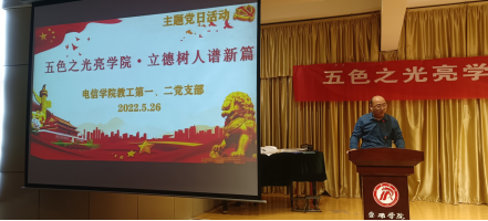 为庆祝中国共产主义青年团成立100周年,喜迎中国共产党第二十次全国代表大会即将召开,落实立德树人根本任务,加强师德师风建设,提高教师党员立德树人使命感,5月26日下午2:30分在江北1401演艺厅,澳门十大信誉好的网站教工第一、二党支部联合开展了“五色之光亮学院,立德树人谱新篇”主题党日活动。主题党日活动由教工第一党支部书记赵志强主持。以此活动为契机,深入学习研究,把握和运用习近平总书记关于教育的重要论述,激发教师加强自身修养,树立高尚品德,引导和激励青年坚定理想信念,以思想价值教育引领学风建设,培养德智体美劳全面发展的社会主义建设者和接班人。