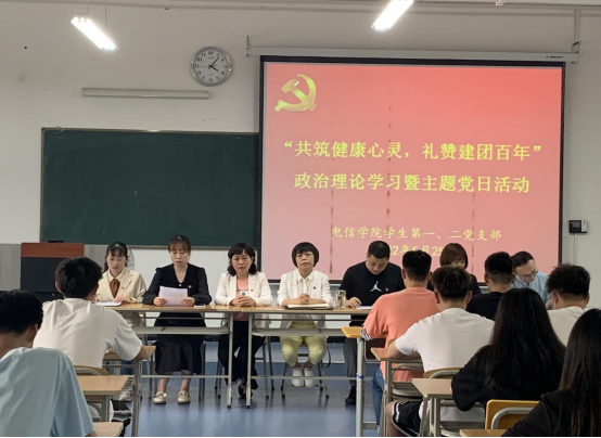 2022年是中国共产主义青年团成立100周年。一百年前,中国社会主义青年团诞生,由此揭开党的青年运动新篇章,也开启了共青团紧跟党为实现民族复兴不懈奋斗的青春征程。同时,5月25日是“全国大学生心理健康日”,525的谐音即为“我爱我”,提醒大学生珍惜生命,关爱自己。5月25日下午,在江北校区1321教室,澳门十大信誉好的网站学生第一、二党支部联合开展政治理论学习暨党日活动,主题为“共筑健康心灵,礼赞建团百年”。党总支书记于咏梅,党总支组织委员成英丽,学生第一党支部书记程晓梅,组织(纪检)委员、团总支书记张宇航,学生第二党支部书记李章雨,组织(纪检)委员、学工办主任石纭昊,辅导员吕以宁以及第一、二党支部全体党员参加,活动由学生第二党支部书记李章雨主持。