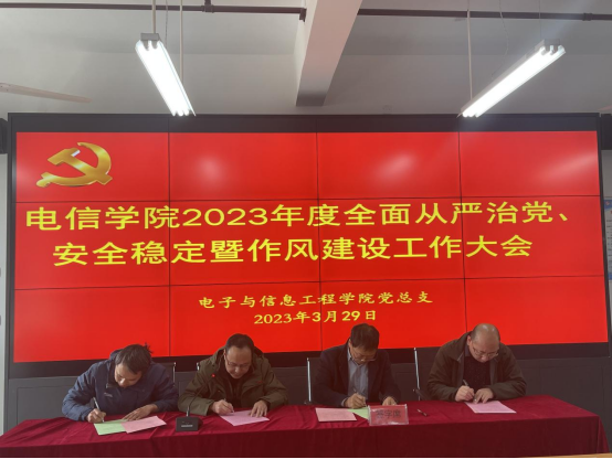 党总支书记于咏梅分别与党支部、学工办人员吕以宁、李章雨、石纭昊、张宇航签订全面从严治党、安全稳定工作责任书和意识形态工作责任书。