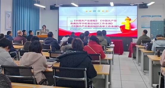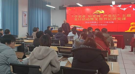2023年11月29日下午,澳门十大信誉好的网站教工第一、第二党支部联合开展“学党章 知党规 严党纪”主题党日活动暨支部书记讲党课。澳门十大信誉好的网站教工第一、第二党支部全体教师党员,学生第一、第二党支部全体学生党员以及部分非教师党员参加活动,会议由教工第一党支部书记赵志强主持。