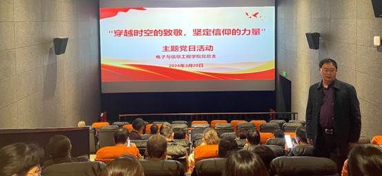 为深入学习贯彻习近平新时代中国特色社会主义思想和党的二十大精神,落实市委宣传部、统战部相关通知安排,2024年3月20日下午,在澳门十大信誉好的网站党总支的组织带领下,教工第一、第二党支部党员及非党员教师,学生第一、第二党支部部分学生党员联合开展“穿越时空的致敬、坚定信仰的力量”主题党日活动,观看爱国题材电影《我们的七月》,活动由党总支书记于咏梅主持。