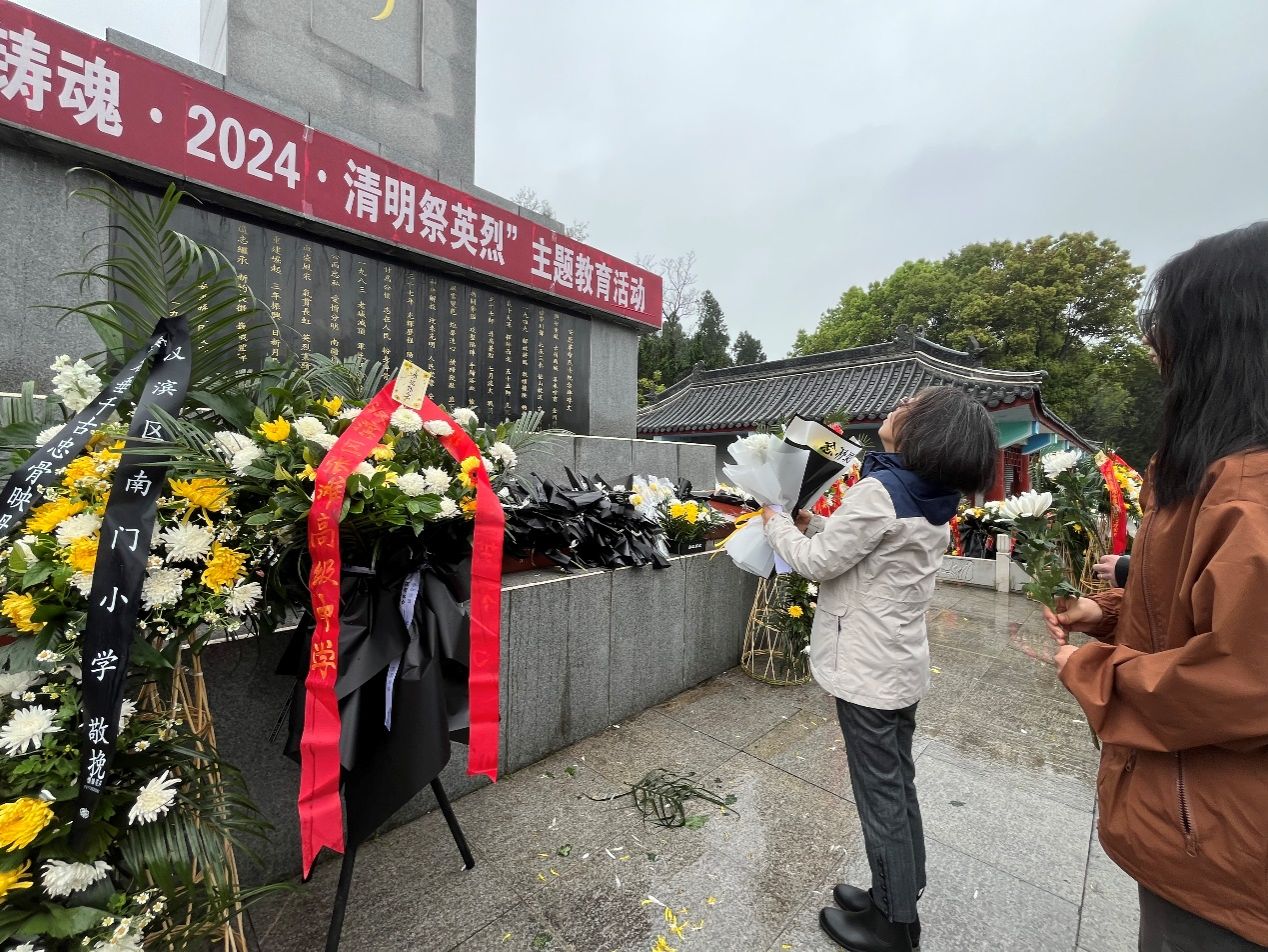 英烈精神永垂不朽,后辈铭记矢志不忘。牛蹄岭上,烈士墓前,伴随着庄严的国歌,全体师生肃立,向为中国人民解放事业和共和国建设事业英勇献身的烈士默哀,手持黄菊,依次敬献,表达对先烈的无限敬仰和深情追思。