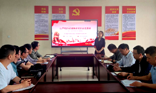 为扎实开展党纪学习教育,进一步增强党员干部廉洁自律意识,强化警示教育,筑牢拒腐防变的思想防线,学习会上,中心组成员集体观看了警示教育片《持续发力纵深推进》第一集《解决独有难题》。警示教育片采用案例纪实、剖析点评等方式,生动讲述以习近平同志为核心的党中央时刻保持解决大党独有难题的清醒和坚定,在新时代新征程上一刻不停推进全面从严治党,健全全面从严治党体系,把党的伟大自我革命进行到底的生动实践。通过观看专题片,党员干部自觉接受了一次党性党风党纪的思想教育,深刻警示党员干部知敬畏、存戒惧、守底线。大家表示,要深学细悟习近平总书记关于党的建设的重要思想和关于党的自我革命的重要思想,扎实开展党纪学习教育,自觉用党规党纪校正思想和行动,坚决做到学纪、知纪、明纪、守纪,不断提升拒腐防变的思想自觉和行动自觉。