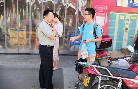 在活动中,实践队员顶着烈日积极在南宫山镇街道进行查看,观察当地垃圾分类处理的实施现状。其后对集镇街道上的行人、商铺店主进行随机访谈,调查当地居民的环保意识。经过为期半天的辛苦调查研究之后,实践队员基本完成了预定目标。