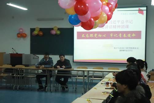 2019年3月7日晚,澳门十大信誉好的网站组织了“不忘跟党初心 牢记青春使命”学习习近平总书记系列重要讲话精神团课活动,参加活动的有澳门十大信誉好的网站党总支书记何道利、团总支书记陈浩以及澳门十大信誉好的网站全体团总支成员。