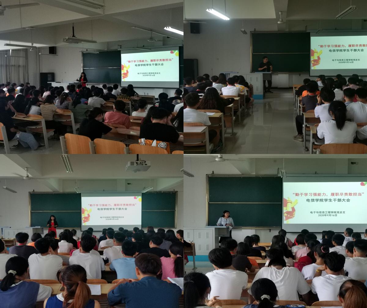 2020年9月16日,澳门十大信誉好的网站召开“勤于学习强能力,履职尽责敢担当”为主题的学生干部大会。澳门十大信誉好的网站团总支、学生会部长以上干部、各班级主要学生干部参加会议,党总支书记于咏梅、学工办主任石纭昊、学生党支部书记成英丽、团总支书记李章雨、辅导员程晓梅老师出席了会议,会议由学工办主任石纭昊老师主持。