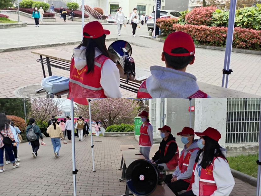 澳门十大信誉好的网站疫情防控志愿者通过扩音器向同学们宣传防疫知识