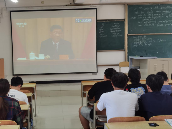 澳门十大信誉好的网站学生第一、二党支部全体党员及学生干部在教学楼1312集中观看大会
