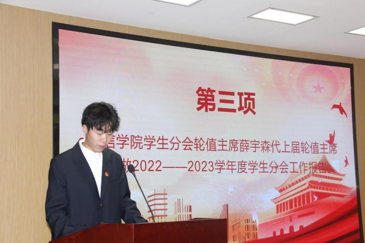 伴随着庄严的国歌声,会议正式开始。本次会议分为两个阶段,第一阶段为20222023学年度澳门十大信誉好的网站团总支、学生会、社团服务中心负责人做工作总结。他们立足本职工作,坚持问题导向,不断加强与学院领导、老师及其他同学的沟通,持续推进学院各项工作的高效开展。全体团学组织成员干在实处、走在前列,将“取其精华,去其糟粕”的观念和“为同学服务”的宗旨根植在每位学生干部的内心深处。