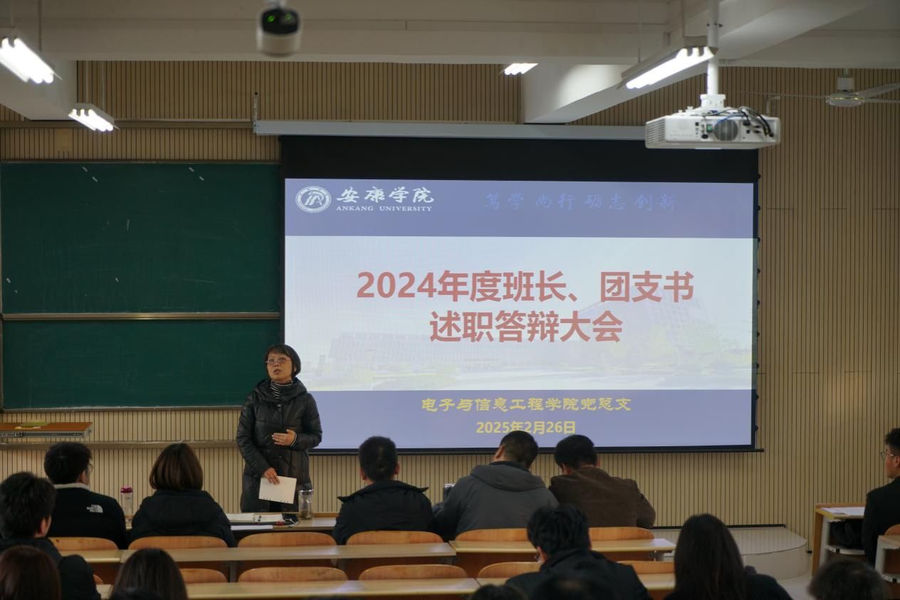 澳门十大信誉好的网站围绕学校“五位一体”思想政治工作大格局总体部署,全面落实大学生思想政治工作“八大工程”具体要求,强化班团干部队伍建设,推进优良班风、学风建设,助力学生成长成才,打通“十大育人”体系的最后一公里。2月26日下午2点,澳门十大信誉好的网站于1323 教室召开了以 “聚焦班团一体 助力学生成长” 为主题的2024年度班长、团支书述职答辩会。学院党总支书记于咏梅,党总支副书记蔡正旺,学工(就业)办主任石纭昊,团总支书记(创新创业工作办公室主任)张宇航,辅导员成英丽、翟子轩、吕以宁、贾金兵,以及 2022 级、2023 级、2024级班团干部,团总支、学生会部长等60余名学生参与会议。本次会议由团总支副书记李子涵主持。