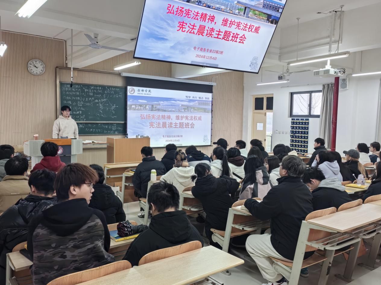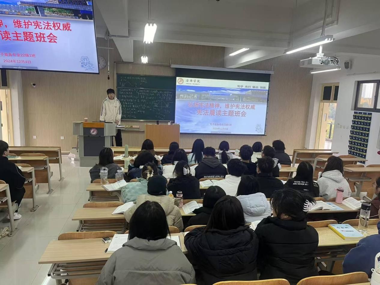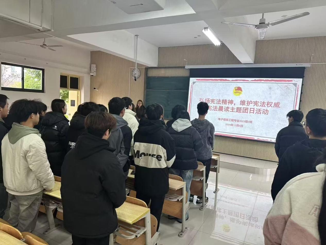 为深入学习贯彻党的二十大、二十届三中全会和全国教育大会精神,深化团员青年宪法法治教育,促进宪法知识的学习与传播,12月1日-12月7日,澳门十大信誉好的网站以“弘扬宪法精神,维护宪法权威”为主题,在全院范围内开展“宪法晨读”主题团日暨主题班会活动。