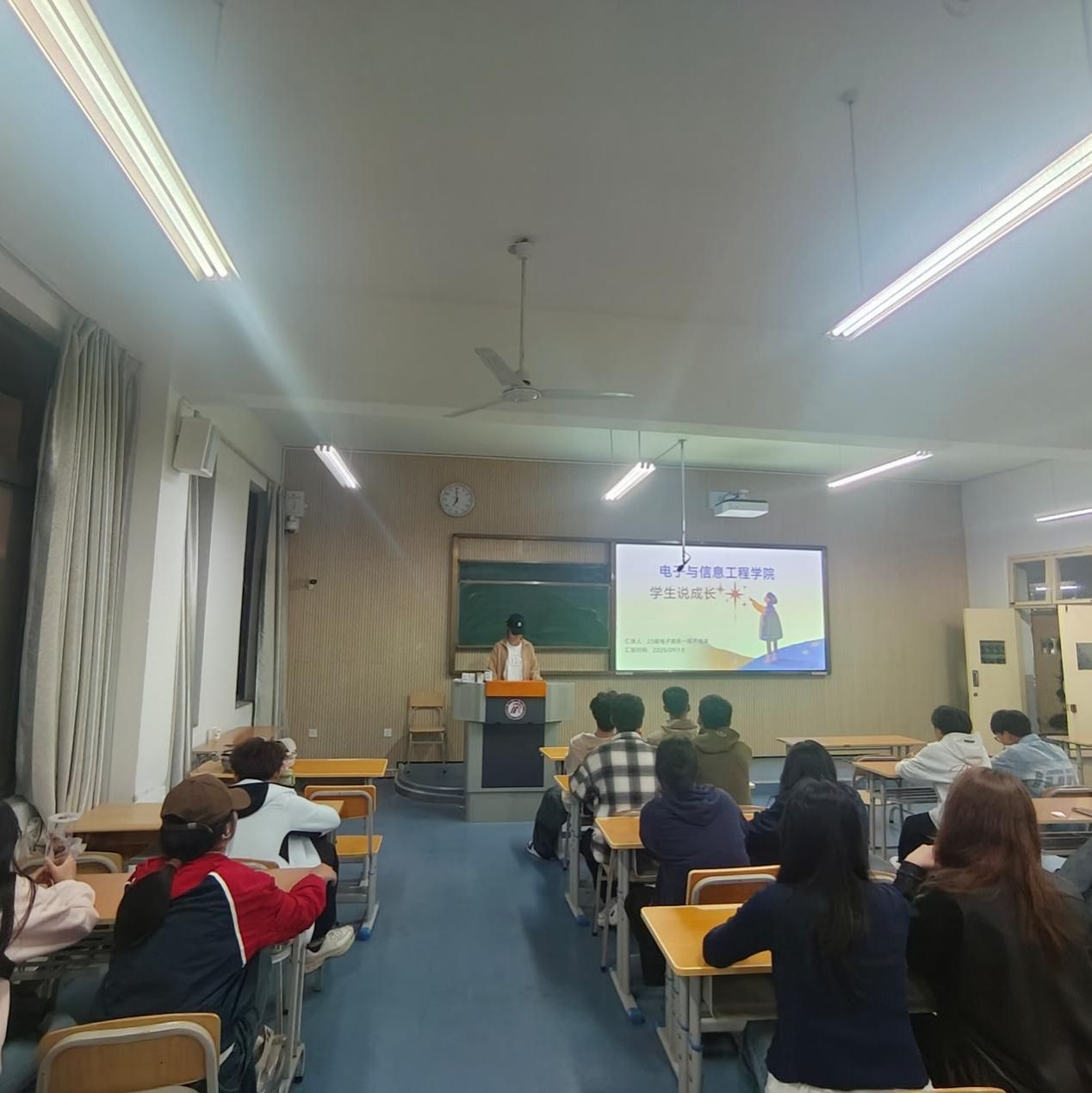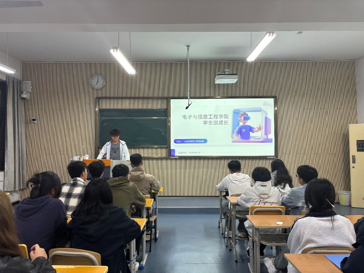 此外,来自2022级的同学则以《竞赛路上的‘破茧’与‘成长’》为主题,复盘了自己备战全国性大学生竞赛的艰辛历程——从连续熬夜调试设备到最终捧回国家级奖项,用“坚持”与“热爱”诠释了电信学子的拼搏精神。