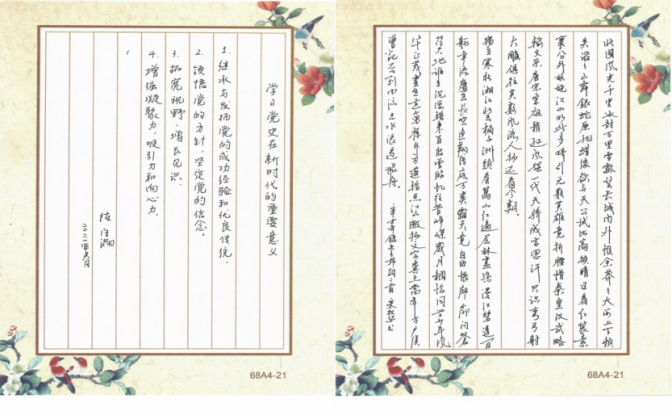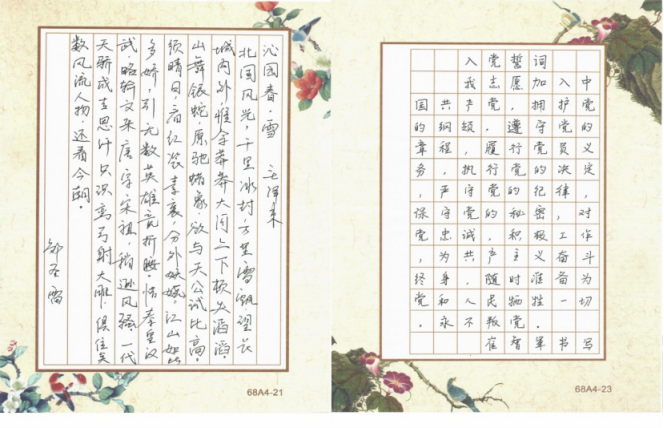 在第二阶段的“学党史硬笔书法展示”活动中,学院体教职工学习党史、手抄党史,积极展示教学基本功。在书写现场,老师们屏息凝神、运笔流畅,把对党的热爱和学习党史的热情融入到一笔一顿中,作品或刚劲有力,或潇洒飘逸,或大方得体,或秀气隽美,展现出澳门十大信誉好的网站教师扎实的教学基本功和昂扬向上的精神状态。
