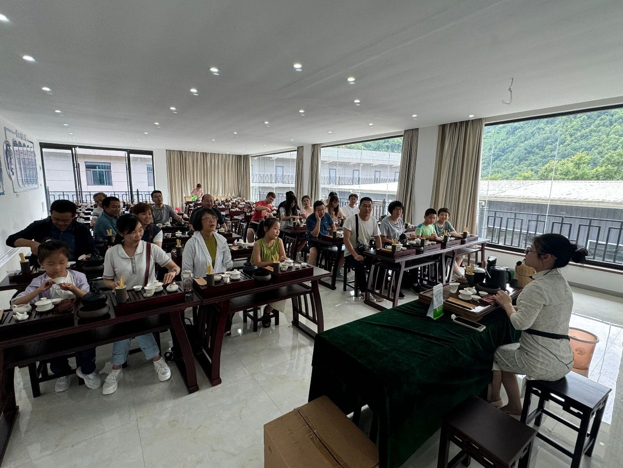 下午,教师随着讲解人员一起加工茶叶,在劳动中体验制茶乐趣。在制茶师傅的指导下,大家学习了如何将采摘的茶叶进行初步处理、杀青、揉捻、干燥等工序。每一步操作都凝聚了制茶人的心血和智慧,也让教师们对茶文化有了更深刻的认识和理解。