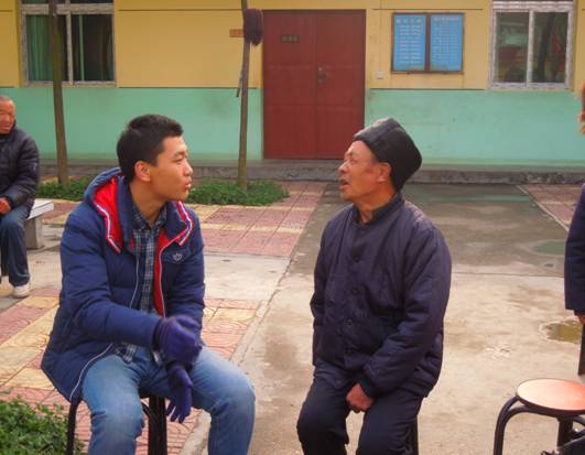 大家一踏进敬老院就迎来了老人们和蔼的笑脸,在带队老师的安排下,打扫、整理屋子井然有序进行着,收拾完毕,同学们有的陪老人聊天回忆美好的往事,有的为敬老院的老人们表演节目、开联欢。
