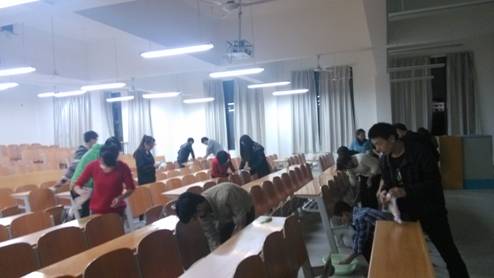 2012年4月3日,电子与信息工程系开展“感恩学校——清洁教室桌椅”活动 。近来出现一些教室的桌椅被乱涂乱画的现象,为了帮助大家意识到乱涂乱画现象的不正确,提高大家爱护学校桌子的公共财产的意识,电信系对1号教学楼3层全部教室的桌椅进行清洗,提示大家时刻爱护公共设施。