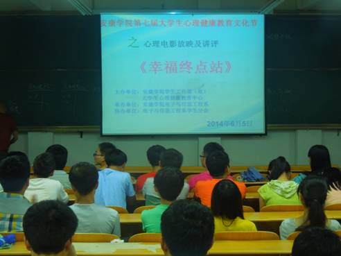 2014年6月5日晚,由电子与信息工程系承办的澳门十大信誉好的网站第七届大学生心理教育文化节之心理电影放映及讲评活动在江北校区1301教室举行,来自江北校区五院系200名大一新生观看了影片《幸福终点站》。电影观看结束之后,政史系王业建老师从不同的角度并结合自身经历对电影进行了点评,王老师鼓励同学们要以乐观、积极、向上、豁然的人生态度去面对生活,融入现代复杂多变的社会,尊重地域、民族、习俗等差异,处理好人际关系,为自己大学生活增添更浓的一笔。
