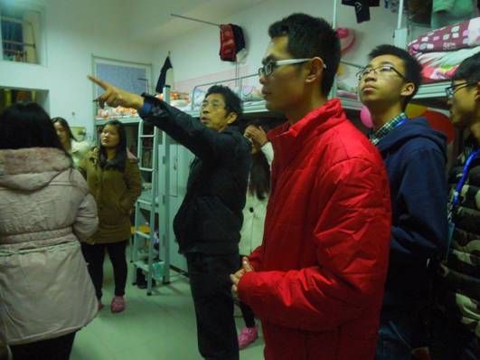 检查中,王贵新老师指出了宿舍安全方面存在的不足,指导学生如何安全用电。学生对安全用电也做出了承诺。
