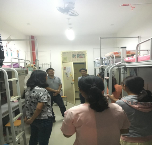 张东红院长和何道利书记一行先后走访了5号和9号学生公寓,亲切的与同学们拉起了家常,深入了解新生对新环境的适应情况;询问了军训期间大家的身体状况。寝室里欢声笑语,洋溢着师生间的融融情意,荡漾着节日里的温馨话语。