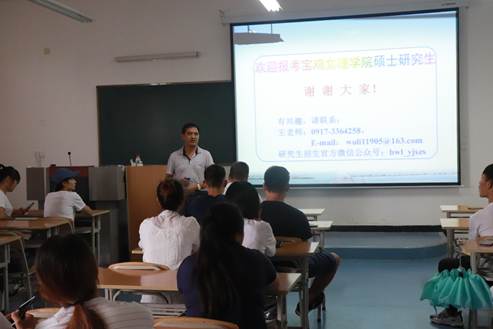 刘飞在会上分析了目前考研的趋势及前景,强调了考研的重要性,鼓励大家积极考研。同时刘飞还就考研报考志愿时应注意的事项做了详细的讲解。