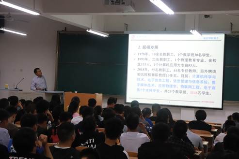 9月25日晚澳门十大信誉好的网站在1301教室举行新生入学教育。参会的有副院长王庆春,辅导员陈浩,2018级全体新生。