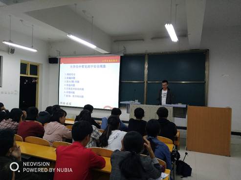 9月24日晚7:30,澳门十大信誉好的网站在2102室、 1323教室举办2018级新生大学校园安全教育讲座。本次讲座由王贵新老师、陈浩老师主讲。