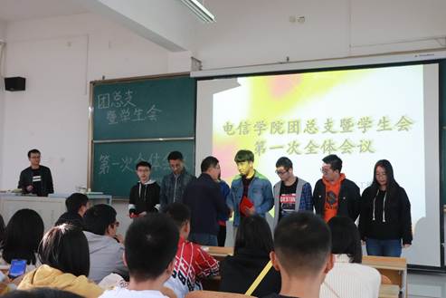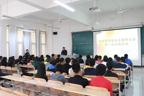 10月22日下午澳门十大信誉好的网站于1404教室召开了第31届澳门十大信誉好的网站团总支与学生分会第一次全体会议。党总支书记何道利,学工办主任石纭昊,团委书记陈浩,学生会与团总支全体学生干部参加会议。会议由陈浩主持。