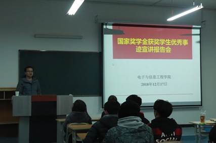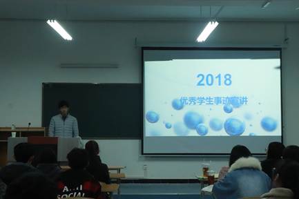 2018年12月17日晚7点30分,澳门十大信誉好的网站进行了国家奖学金获奖学生优秀事迹进班宣讲报告会,报告会由团总支书记陈浩老师主持,澳门十大信誉好的网站2018年荣获国家奖学金的王松、汪钊、黎敏三位同学作报告,澳门十大信誉好的网站全体大一新生参加。