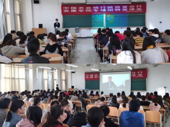 2019年10月18日澳门十大信誉好的网站于1404教室举办了中国农业银行陕西分行专场招聘宣讲会。宣讲会由就业处郑武斌老师主持,由中国农业银行陕西分行安康支行人力资源部廖颖老师主讲,中国农业银行安康分行人力资源部戴启良、易红梅也来到了现场。澳门十大信誉好的网站、经管学院、农生学院2016级共百余名同学到场参加。