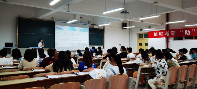 9月10日,为助力2023届同学考研,澳门十大信誉好的网站学工办牵头,特邀灿程考研机构开展英语公开课,帮助考研同学了解英语高分技巧,学习阅读和写作的方法。本次参加公开课的同学共计70余人。