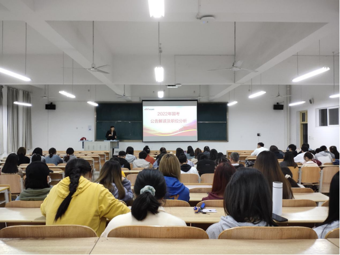 10月16日,为助力2018级同学参加2022年国家公务员考试,澳门十大信誉好的网站学工办牵头,特邀中公教育开展公务员考试公开课,帮助考公同学了解国家公务员考试情况,掌握考试内容,学习考试技巧。本次参加公开课的同学共计90余人。