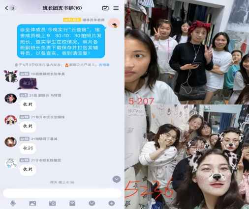 在疫情防控常态化管理的关键时期,为确保学生度过一个安全、稳定的清明假期,保持良好的宿舍卫生,创建美好的校园环境,4月5日,澳门十大信誉好的网站开展了“疫情防控不松懈,宿舍文明我先行”的主题活动,全体辅导员通过“云”查宿的方式充分发挥宿舍育人功能,督促同学们做好宿舍卫生,强化安全意识,共同营造一个良好的宿舍氛围,确保假期安全、祥和。