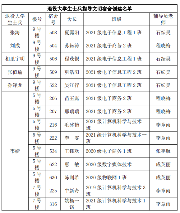 澳门十大信誉好的网站退役大学生士兵指导文明宿舍创建名单