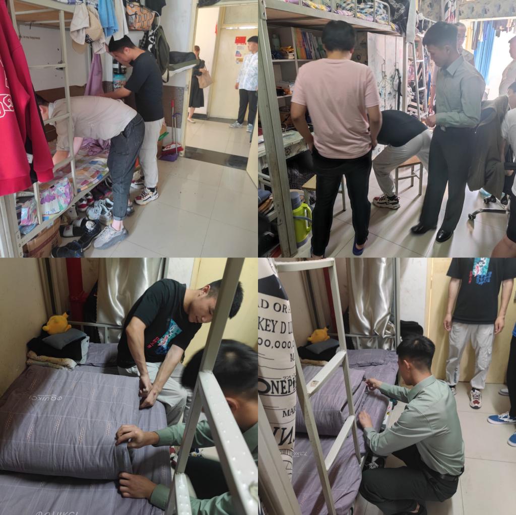最后,辅导员张宇航、程晓梅、李章雨强调,宿舍是学生学习、生活的重要场所,退役大学生士兵在指导宿舍的过程中,提出了整改要求,示范了整改标准,需要每位同学在日常生活中继续保持。退役大学生士兵指导宿舍活动,不仅仅指导宿舍内务,更是希望在长期指导过程中,培养出学生优良的生活习惯、做事态度以及纪律观念。对进一步做好这项工作提出要求:一是退役大学生士兵要继续发扬军人优良作风,不忘初心,牢记使命,在理想信念、学习生活、内务整理等方面发挥示范作用,争做营造文明宿舍环境的示范者、和谐宿舍风气建设的引领者;二是同学们要在宿舍建设中学习先进榜样,在舍风建设中树立责任意识,团结协作,共建整洁、文明、温馨的宿舍环境,力争创建文明宿舍。